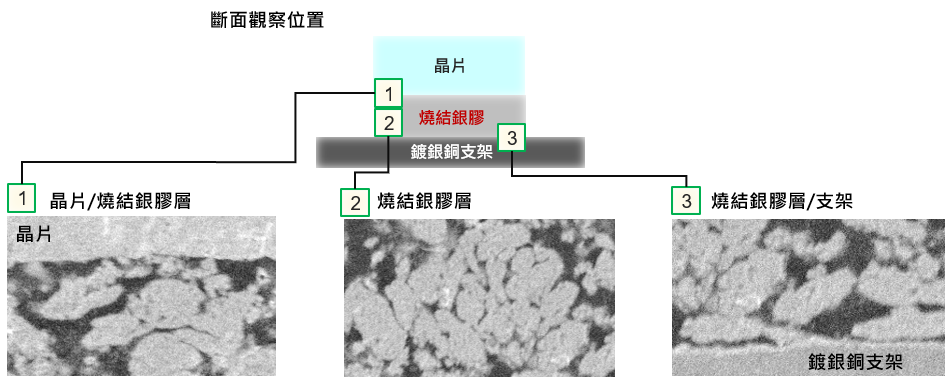 燒結型銀膠能大幅降低材料成本與加工黏度,並提升可靠性與耐濕性,在多循環熱衝擊(−40 °C 至 150 °C)下仍保有穩定電性與黏著強度,為實現車用、高頻或極端環境下電子元件封裝的關鍵材料之一,綜合而言,高導熱燒結銀膠兼具高熱導、高可靠與低溫加工潛力,已成為次世代高性能導熱介面材料的研究焦點