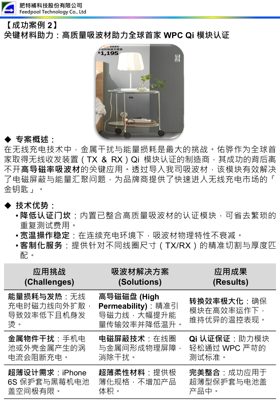 世界首家、唯一的 Qi 模块认证背书,展现产品在无线充电标准化领域的领导地位。