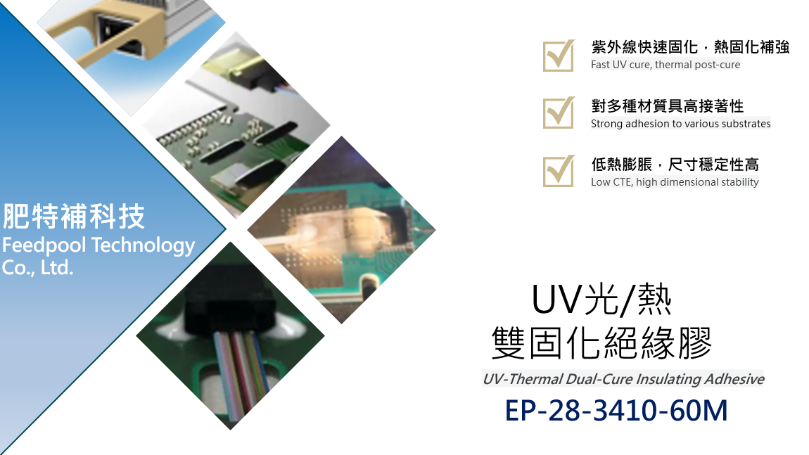 肥特補科技因應市場主流需求,推出光/熱雙固化膠材 EP-28-3410-50K,專為高精度光通訊元件設計,適用於光模塊對位、固定與封裝應用。
